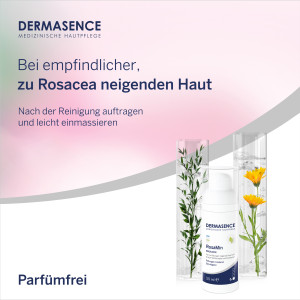Pflegetipp: Zur schonenden Reinigung empfehlen wir DERMASENCE RosaMin Reinigungsemulsion und als mildes Gesichtswasser DERMASENCE Tonic.