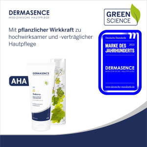Die DERMASENCE Seborra Hautklärende Körperlotion ist eine Gesichts- und Körperpflege, die für unreine und zu Akne neigende Haut entwickelt wurde. Mit einem hohen Gehalt von 10% Glycolsäure und Urea verbessert sie das grobporige Hautbild und pflegt feuchtigkeitsarme, fahle Haut. Diese Lotion ist eine ideale Körperpflege für reife Haut und führt bei regelmäßiger Anwendung zu sichtbar glatterer und strahlender Haut. Besonders geeignet ist sie zur Vorbereitung auf und zur Pflege nach Chemical Peelings. Diese Gesichts- und Körperpflege ist eine effektive Lösung für eine gepflegte und gesunde Haut. Sie ist nicht komedogen, hautfreundlich parfümiert und dermatologisch getestet.