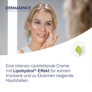 Mit dem Lipohydrol®-Effekt wirkt die DERMASENCE Adtop XC Lipidcreme intensiv rückfettend für extrem trockene und zu Ekzemen neigende Hautstellen. Mit Ceramiden und natürlichen Ölen pflegt sie die Haut, schützt vor Austrocknung und sorgt so für einen leichten Schutzfilm und eine starke Hautbarriere. Der hautfreundliche Johanniskraut-Extrakt wirkt beruhigend und barrierestärkend. Sie vermindert mit natürlichen Feuchthaltefaktoren trockenheitsbedingten Juckreiz und ist auch für Kinder ab 3 Jahren geeignet. Dermatologisch getestet, parfümfrei und vegan.