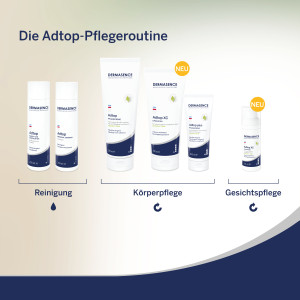 Pflegetipp: Zur sanften Reinigung DERMASENCE Adtop Wasch- und Duschlotion und zur Pflege extrem trockener Haut am Körper DERMASENCE Adtop XC Lipidlotion verwenden.