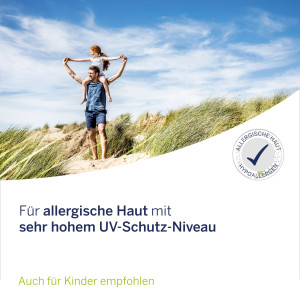 Anwendungshinweis: Geringe Mengen reduzieren die Schutzleistung erheblich. Augenkontakt vermeiden. Sonnenschutzmittel mehrfach auftragen, um den Schutz aufrechtzuerhalten. Dies gilt besonders nach dem Schwimmen und Abtrocknen sowie Schwitzen. Intensive Mittagssonne vermeiden. Babys und Kleinkinder vor direkter Sonneneinstrahlung schützen und Sonnenschutzmittel mit hohem Lichtschutzfaktor (LSF > 25) sowie schützende Kleidung verwenden. Auch Sonnenschutzmittel mit hohem Lichtschutzfaktor bieten keinen vollständigen Schutz vor UV-Strahlen. Bleiben Sie, trotz der Verwendung eines Sonnenschutzmittels, nicht zu lange in der Sonne. Exzessive Sonnenexposition stellt ein ernsthaftes Gesundheitsrisiko dar.